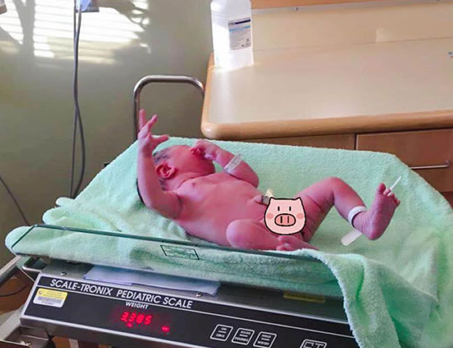 凌晨1点30分,金猪宝宝出生,因为提前生产,宝爸没有在身边,还好有月嫂阿姨全程陪同。